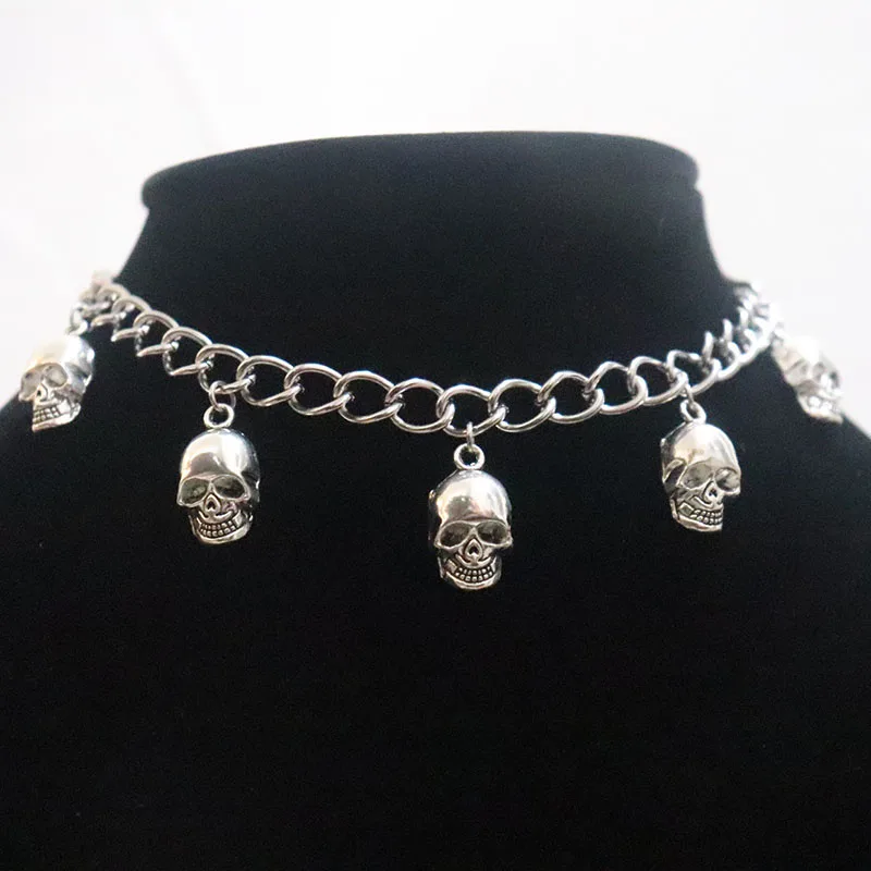 Vintage Skull Pendant Necklace – Unisex Punk Metal Choker Jewelry